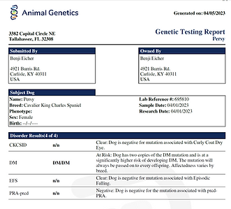 Tiny is an AKC registered Cavalier King Charles Spaniel. She is small and a sweetheart. She had a small litter of 3 puppies with Tyson on 11/18/2025. Puppies will be vaccinated and wormed regularly. Kennel offers a complimentary microchip. Will be 8 weeks old and ready for new home on January 13, 2026. Both Tiny & Tyson are both clear genetically.
